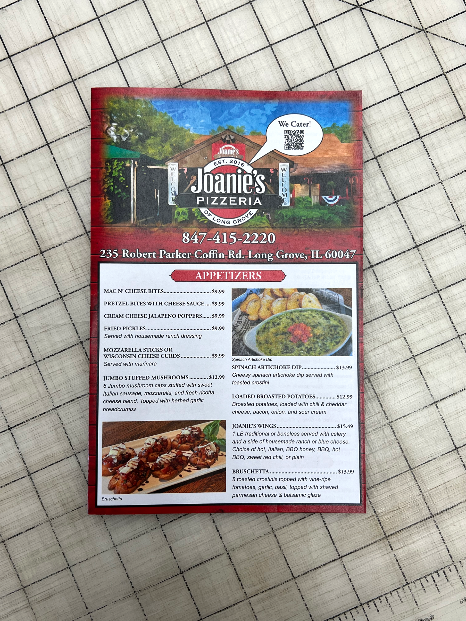 For this menu design, the restaurant, Joanie’s Pizzeria wanted to redesign their menu while having no previous artwork from it. After talking with the team there, I understood that they wanted a rustic look and almost farmhouse feel to it. After looking at the old physical copy, I started to create artwork to help convey their feel while making the menu easier to read.